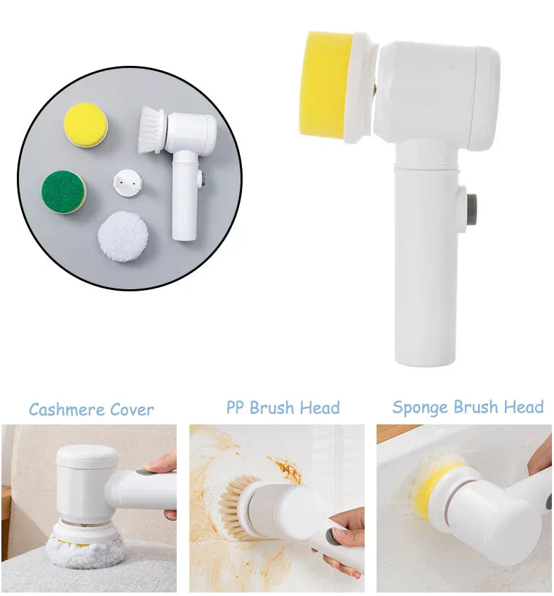 EFFICIENT CLEANING & POWERFUL BATTERY: The power scrubber set is powered by high capacity rechargeable battery to extend usage time. It is working duration up to 1-2h after per full charge. The use of spiral design, not chip, not to hurt the hand. High quality water drawing material, durable and non rusting. You just need press one button and own a tidy house. THE DESIFNAL IS SIMPLE & PRACTICAL: The hand-held electric cleaner is cordless and can be used anywhere, eliminating the trouble of traditional power cord entanglement. Professional waterproof, waterproof seal design makes it safe to operate in wet conditions such as shower sinks. The power scrubber is very lightweight and can clean the surface quickly without fatigue. MULTI-PURPOSE BRUSH HEADS SET: You'll receive a set of durable scrub brush heads, that are four multi-purpose cleaning brush heads.The 3 cleaning brush heads can be great used for cleaning in bathroom, kitchen, and outdoor.The scouring pad also can be used to care for leather product, such as sofa, shoe, car seat, etc. MULTI-PURPOSE BRUSH HEADS SET: You'll receive a set of durable scrub brush heads, that are four multi-purpose cleaning brush heads.The 3 cleaning brush heads can be great used for cleaning in bathroom, kitchen, and outdoor.The scouring pad also can be used to care for leather product, such as sofa, shoe, car seat, etc